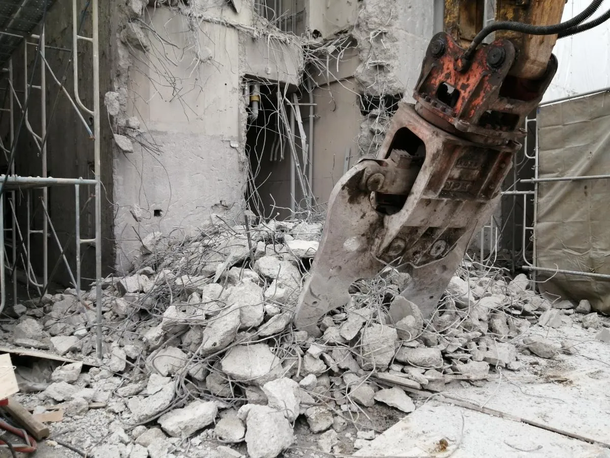 - 解体作業 実際の解体作業が行われます。大型の重機や手作業を組み合わせ、建物を解体していきます。作業中は、騒音や振動を最小限に抑えるための対策が求められます。